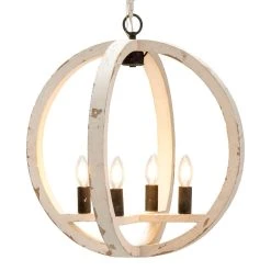 World Market Shelton Distressed White Wood Orb 4 Light Pendant Lamp