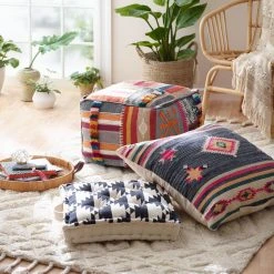 World Market Black and Ivory Dot Indoor Outdoor Floor Cushion