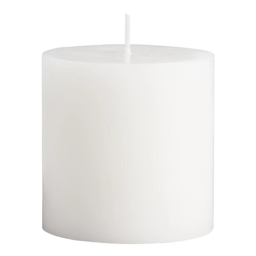 Create a dramatic scene lit by flickering candlelight with our clean and classic white pillar candle. Versatile and fragrance-free, this wax pillar adds simple elegance to any space.
