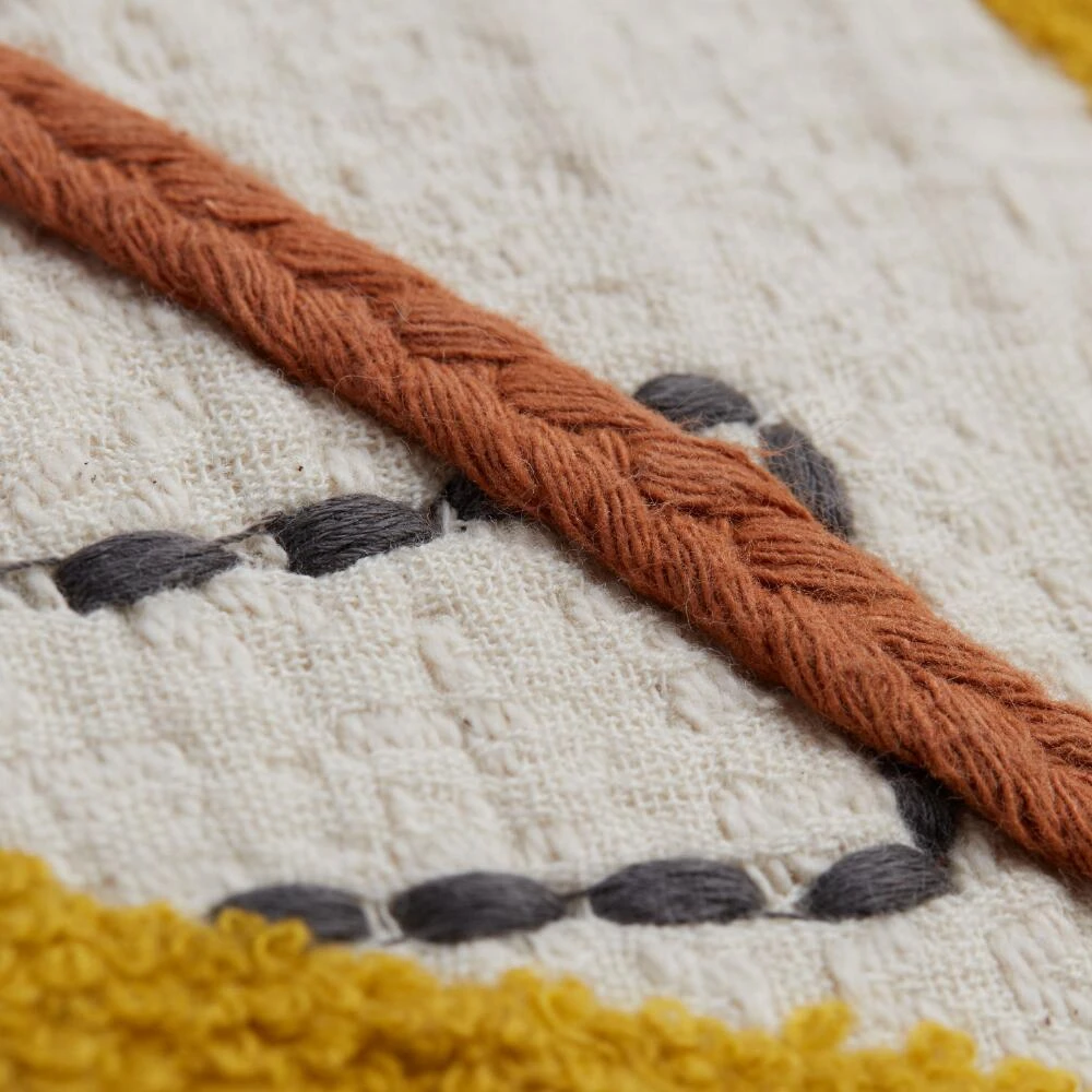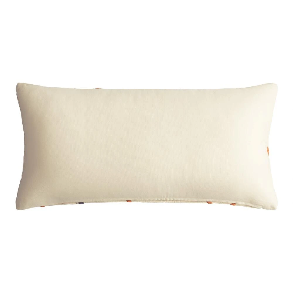 Like post-modern art for your sofa, our lumbar pillow features appliqued lines in mustard yellow, terracotta and navy freely zigzagging around an ivory background. Featuring a removable insert, the lumbar shape makes this throw pillow a fun addition to your home decor.