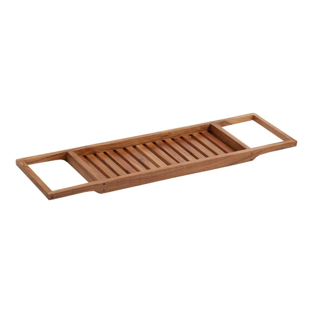 Bring a peaceful element of the outdoors into your bathroom with this acacia wood bath caddy, designed to perch atop the edges of a standard bathtub. Made with a simple and sleek design, it’s perfect for holding your favorite beverage and book above the bath water while you unwind with one of our luxurious bath salts or bath bombs.
