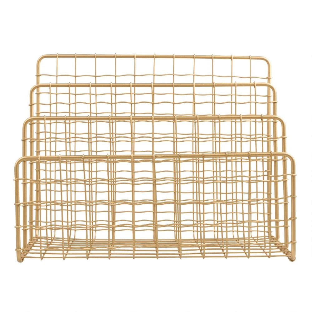 With a brushed-gold finish and slightly wavy weave, our metal file holder lends effortless glamour to any workspace. With three spacious slots for files, papers or mail, this sophisticated piece has substance to match its style.