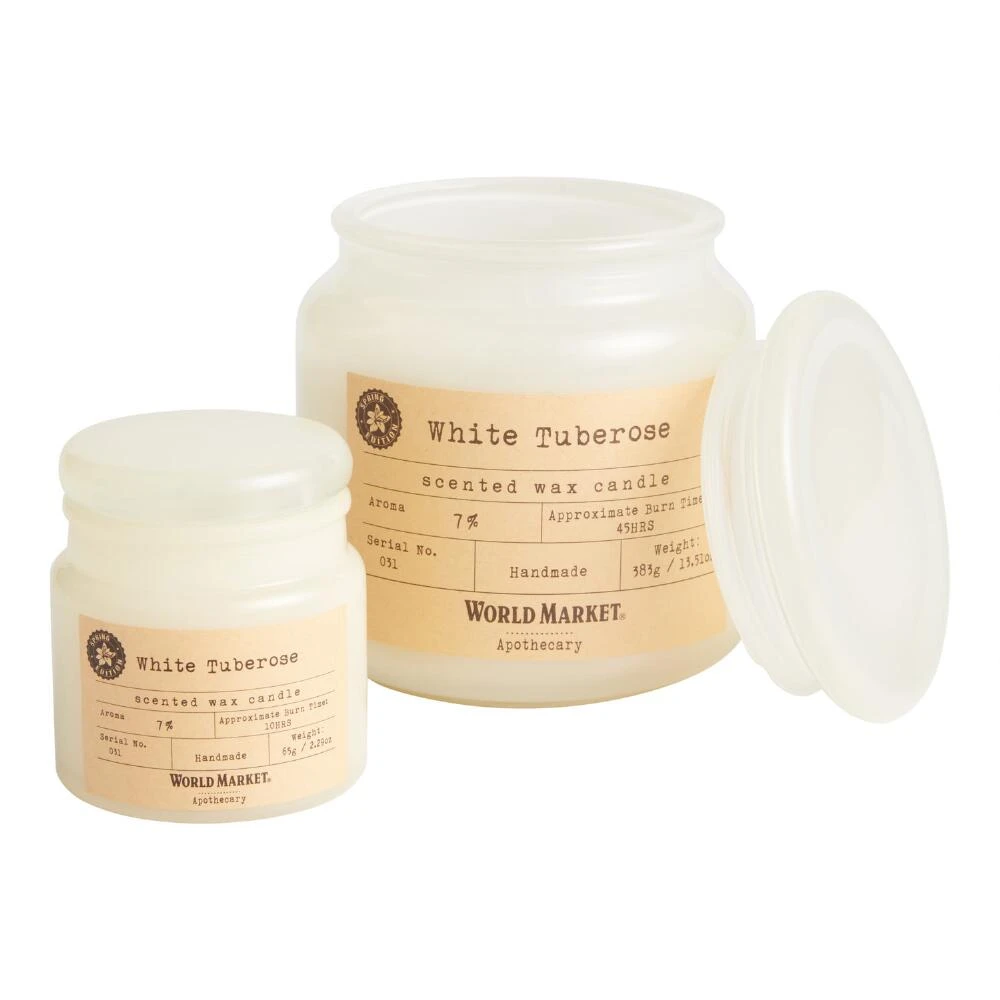 In a vintage-inspired milk-glass apothecary jar, our hand-poured candle refreshes your room with white-flower scents evocative of a Caribbean garden party. Richly scented with our proprietary fragrance, including top notes of nectarine, English pear and cassis, middle notes of pink tuberose, peony and wild daisy, and woodsy, musky base notes, it’s available in two sizes. The mini is great for travel and the medium size is perfectly gift-worthy.