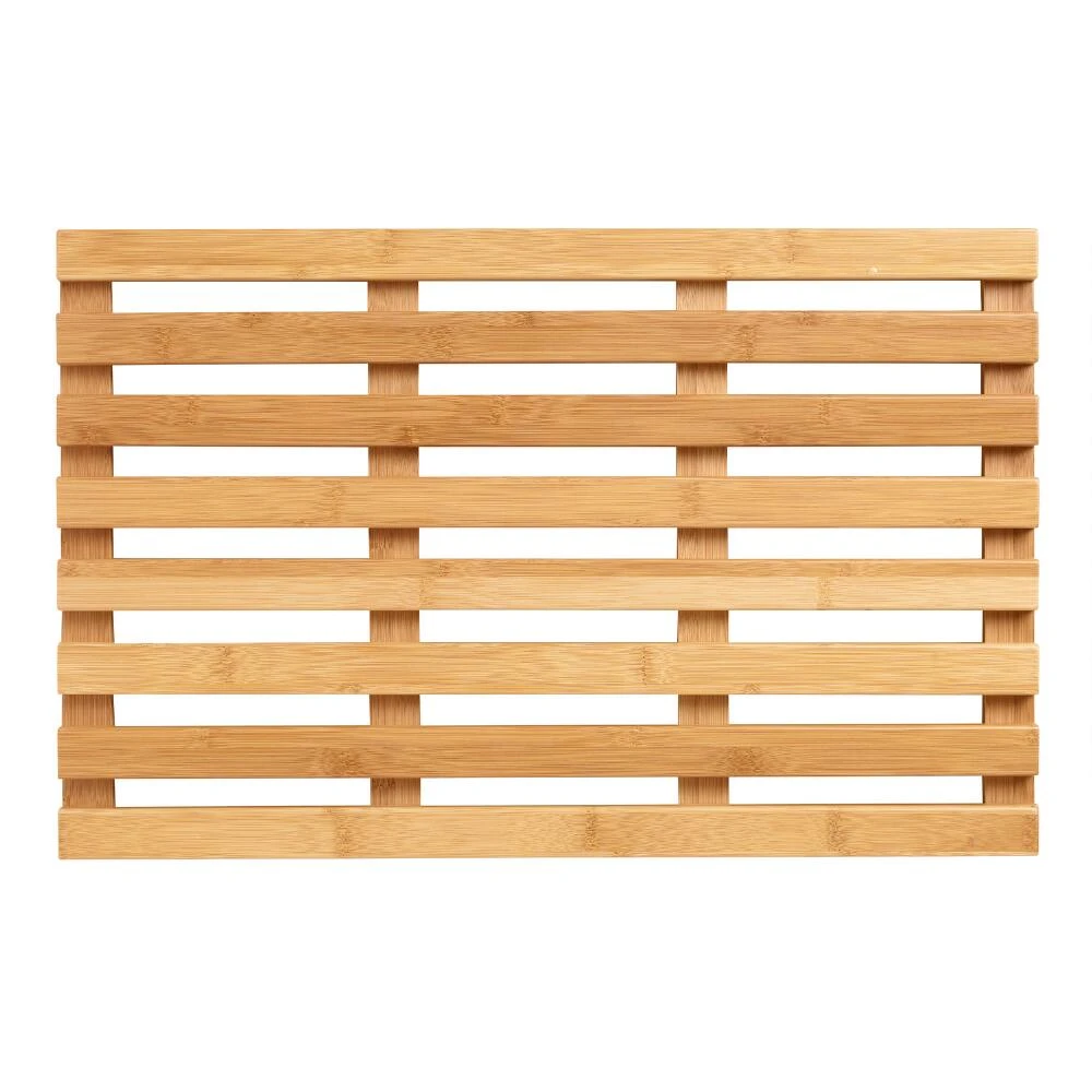 When you step out of the shower or bath, our water-resistant bath mat under your feet will remind you of your last trip to the spa. Made from bamboo, a natural and renewable resource, this mat always looks neat and tidy and it’s a snap to clean. You’ll also love the way the natural finish of the wood lends warmth to the look of your bathroom.