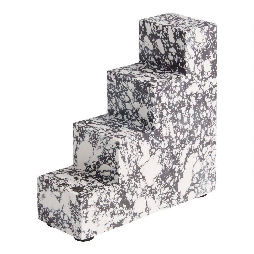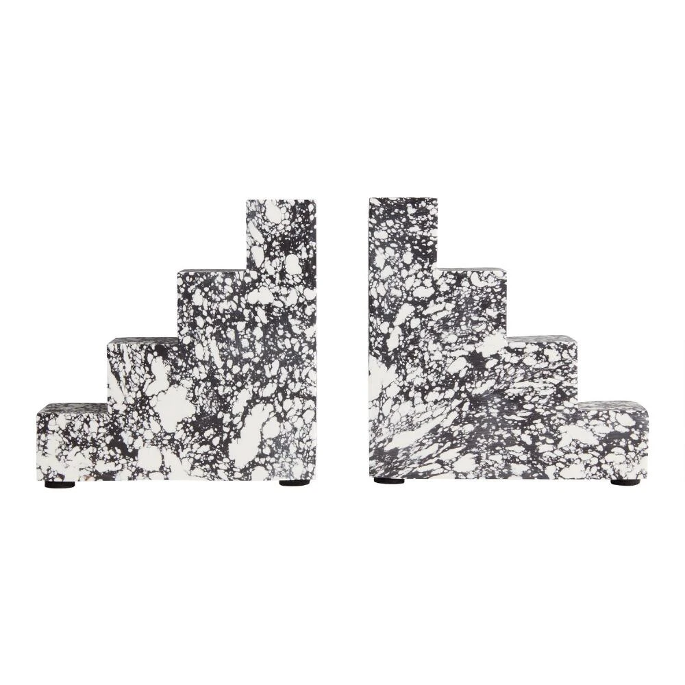 Square steps of smooth terrazzo give these bold bookends their geometric appeal. Chicly speckled in black and white, they add stylish visual texture to your bookshelf or desktop.