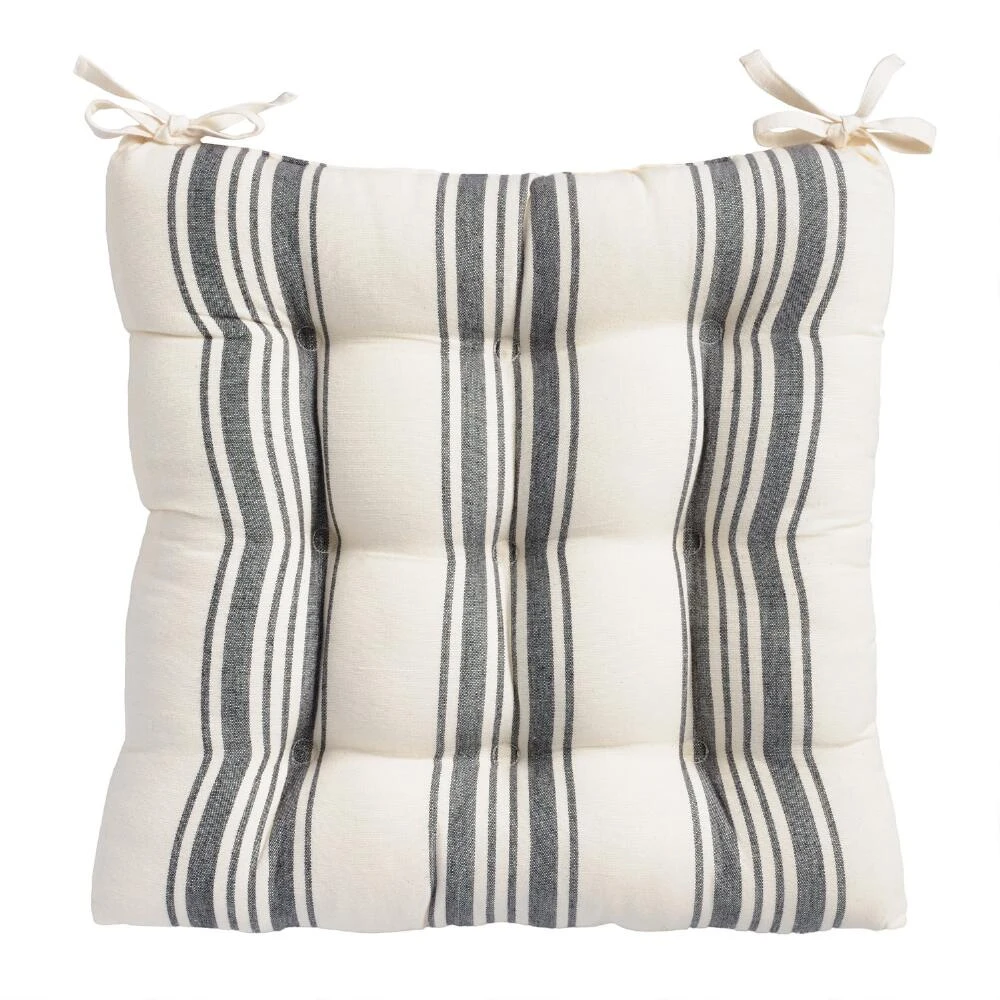 Comfy and classic, our cotton cushion features black French-style stripes set against a natural background. Pair it with our coordinating table linens for an effortlessly put-together look.