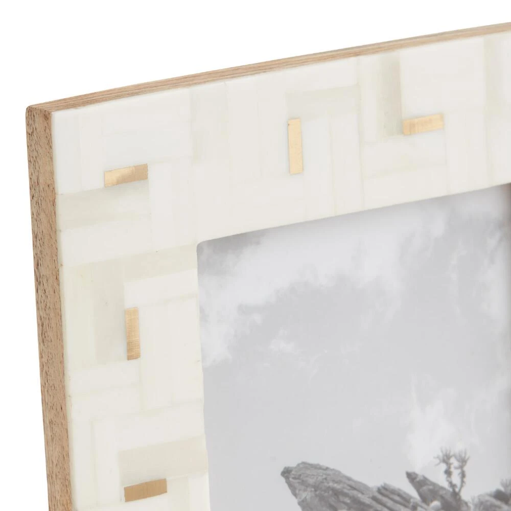To create our exclusive 4×6 picture frame, skilled artisans arrange pieces of sustainably sourced bone in a geometric parquet-style pattern. Accented with luminous brass details, this frame draws attention to your treasured photo memory.