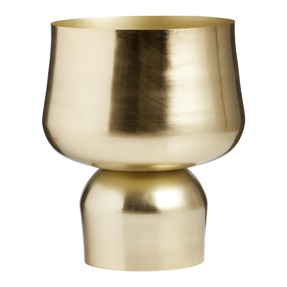 Add uplifting greenery to your space with this modern pedestal planter finished in glistening brushed gold. Designed to fit your favorite 10-inch plant, its unique shape and shine make a glamorous statement everywhere from the dining room to a reading nook.