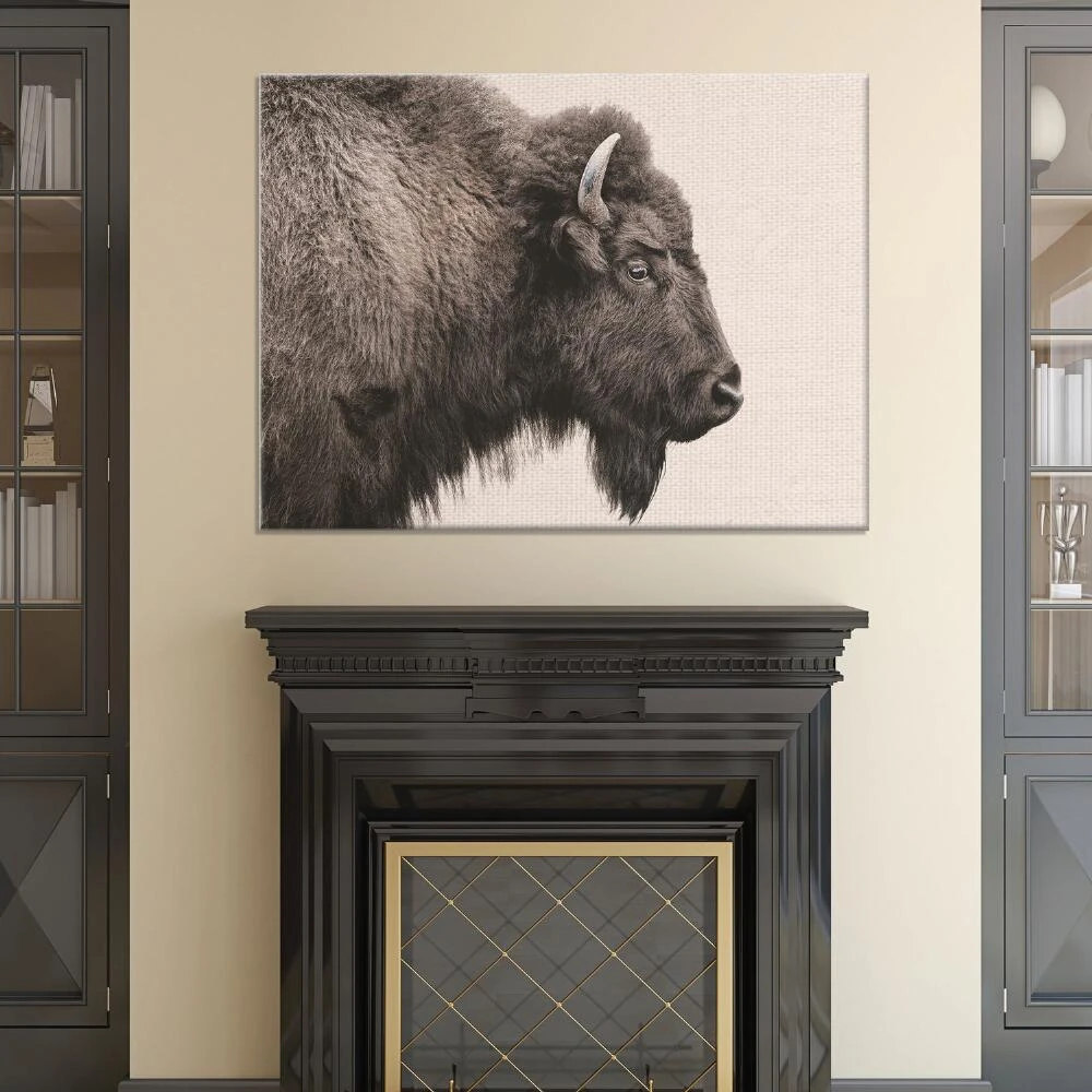 Our buffalo canvas wall art brings a wild touch to any room you choose. Its versatile grayscale palette draws attention to every stunning, scruffy detail on this beautiful beast’s profile. This photograph wall decor is gallery-wrapped so the image covers all the exposed sides, adding to the rich visual impact of the piece.