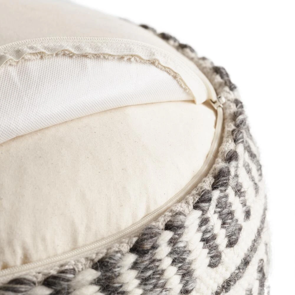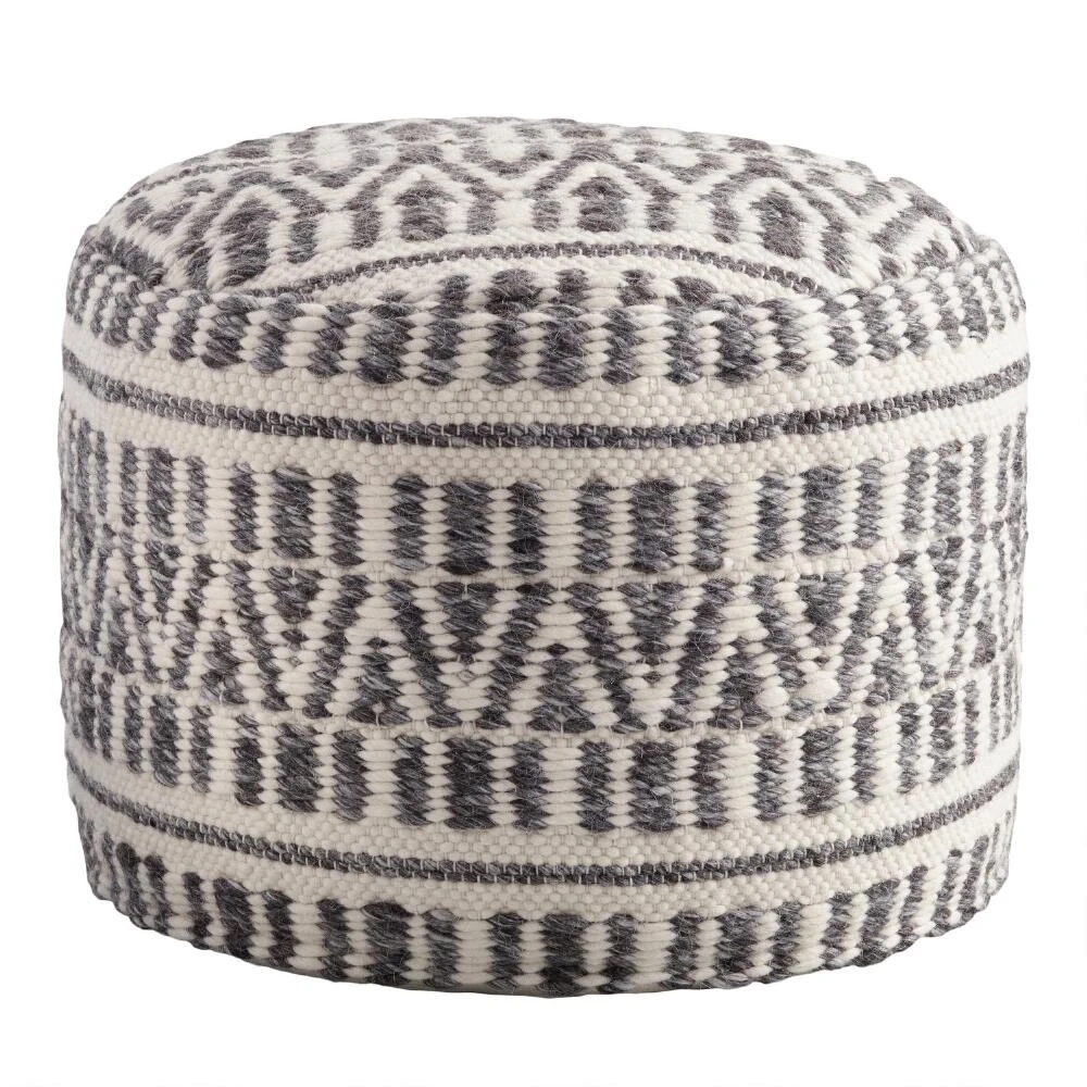 Our exclusive floor pouf features a textured charcoal gray and ivory color scheme. This sturdy cushion is ideal for distinguishing small spaces or adding an extra seat for guests without taking up too much floor space.