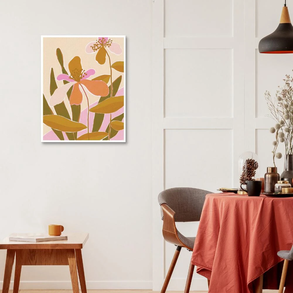 Ukrainian-born artist Alisa Galitsyna captures abstract iris blooms in olive green, mustard yellow and pink hues in this framed and ready-to-hang canvas art. Galitsyna grew up in a small town outside of Kyiv, surrounded by nature, and was exposed to museums, art and theater at a young age. Now residing in Spain, she combines various techniques, textures and colors to express the beauty and simplicity of the world around us.