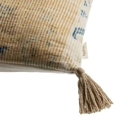 Add vintage charm to your home decor with our exclusive, light coral carpet-inspired throw pillow. Featuring classic taupe tassels on each corner, this toss pillow is beautifully made with a blue, green, ivory and coral print and touch-worthy ribbed texture giving it that extra wow factor.