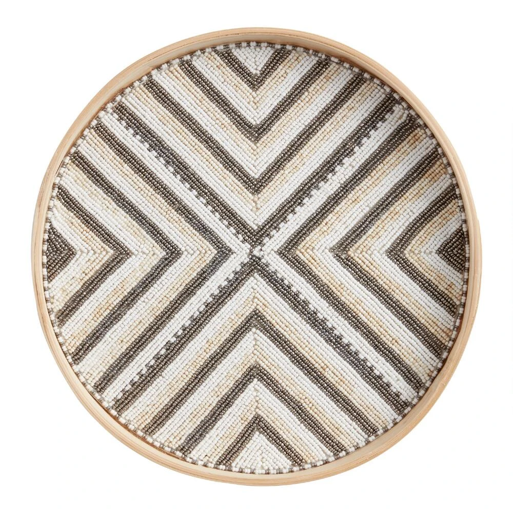 Handcrafted in global artisan communities and available in limited quantities, our one-of-a-kind CRAFT pieces bring heirloom-quality style to your home. This bamboo tray is made in India and adorned with thousands of gleaming white and bronze beads carefully arranged in a zigzag pattern. A gorgeous blend of timeless craftsmanship and contemporary good looks, it’s dazzling wherever you display it.