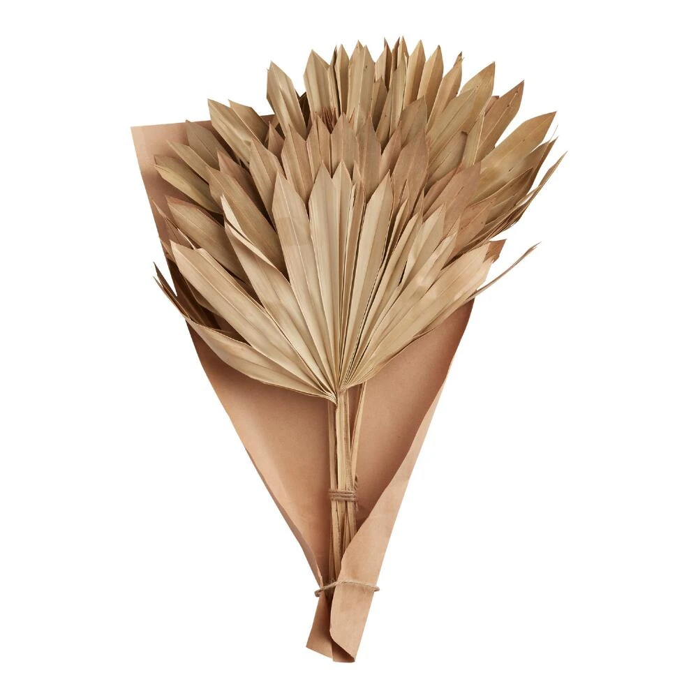 Brimming with tropical vibes and boho-chic style, these fan-shaped dried sun palm stems bring breezy beauty to your decor. Available in natural or dusty pink, they’re ready to display in a single vase or divide among arrangements across your space.