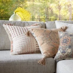 This embroidered floral lumbar pillow is the eye-catching accent your home decor is missing. With tufted leaves and flowers in colors of pink, green, gold and rust, this toss pillow is sure to fit in any decor style from ’70s-inspired to traditional. Made of a soft ivory cotton with a removable insert, this pillow will bring to life any seating area in your home.