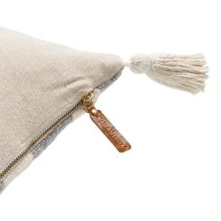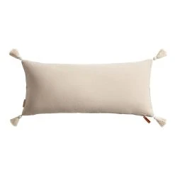 Brighten up your home decor with our cheery aqua and ivory oversized lumbar pillow. Vertical offset stripes run the length of this extra-wide pillow, and each corner features an ivory tassel. Complete with a removable insert making spot cleaning a cinch, this toss pillow comes with an elevated gold zipper.