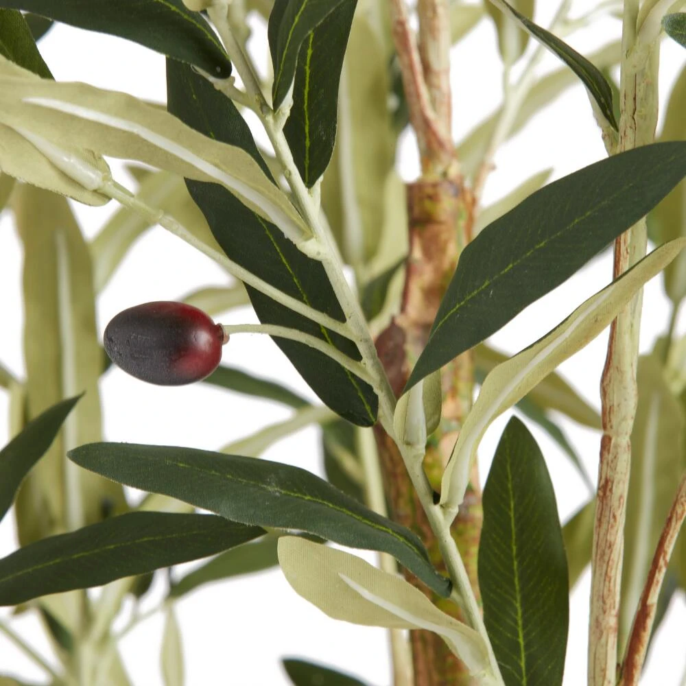 This tall artificial olive tree features slender branches filled with lifelike leaves and studded with plump faux fruit. Plant this peaceful fake tree in a woven basket or ceramic pot that complements your style to fill your decor with sunny Mediterranean splendor for years to come.