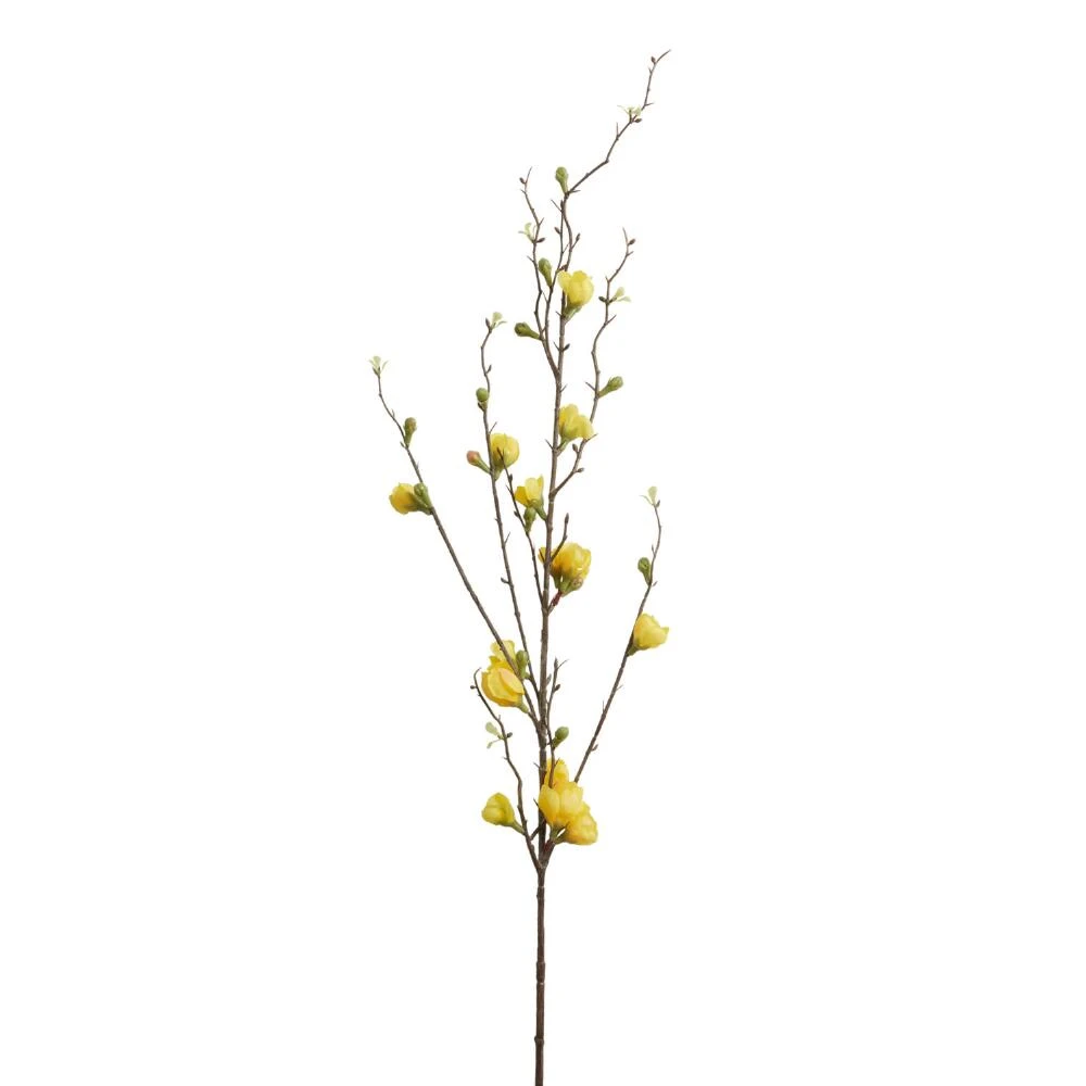 Delicate faux blooms line the rustic posable branches of this artificial peach blossom spray. Available in irresistible shades of yellow, coral and white, this fool-the-eye fake is a graceful, sculptural addition to vases and floral arrangements.