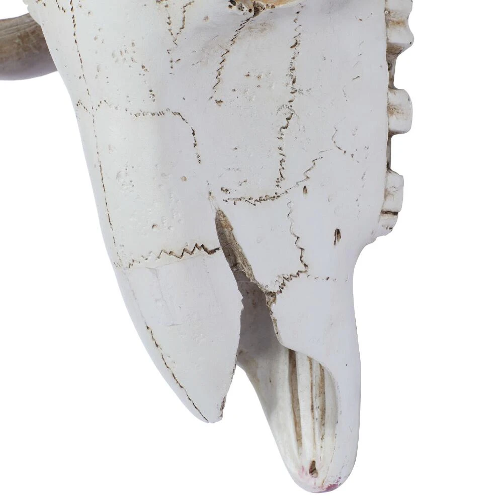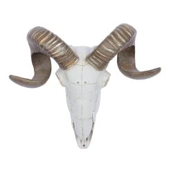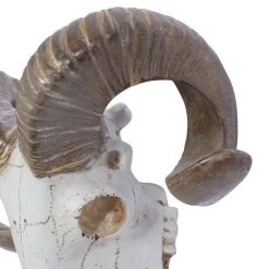 Hang this faux ram skull over a bed or mantel to bring rustic farmhouse appeal to your space. With textured horns and details like cracks and coloring for an aged effect, this realistic piece is right at home with boho-styled rooms.