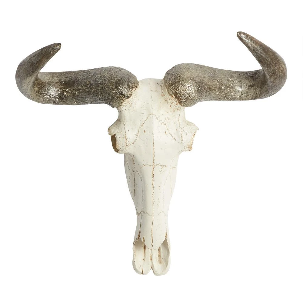 Hang this faux steer skull wall decor over a bed or mantel to bring rustic farmhouse appeal to your space. With textured horns and details like cracks and coloring for an aged effect, this realistic wall art piece is right at home with traditional and boho styled rooms.