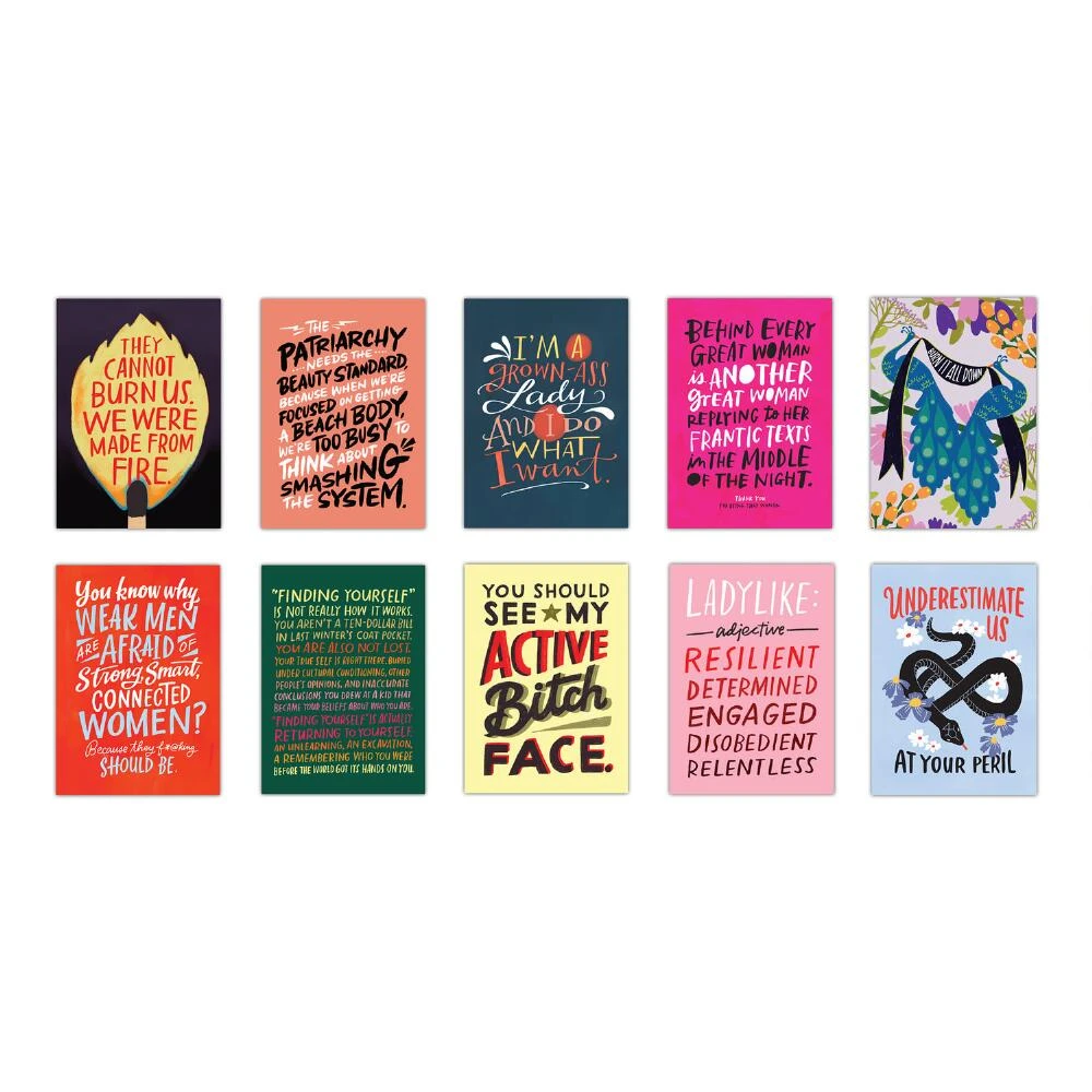 Send words of feminist empowerment with these postcards featuring bold messaging and vibrant artwork. With 10 different designs, they’re the perfect gift for any patriarchy-smashing friend in your life.