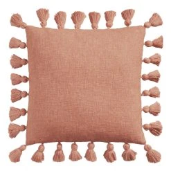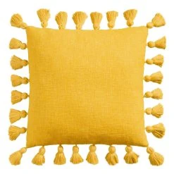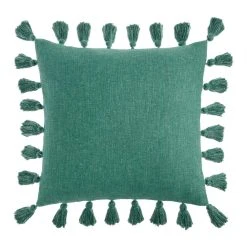 A fun throw pillow featuring tassels on all four sides, this versatile home decor accent brings comfort and playful style to any room. Available in a summery greenish blue, neutral ivory, warm hazel brown and vibrant butter-yellow hues, this oversized toss pillow mixes and matches easily to refresh the look of couches, beds and cozy chairs.
