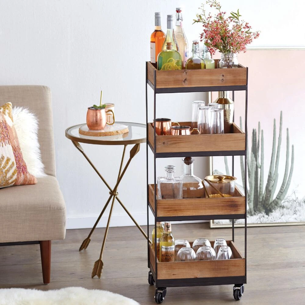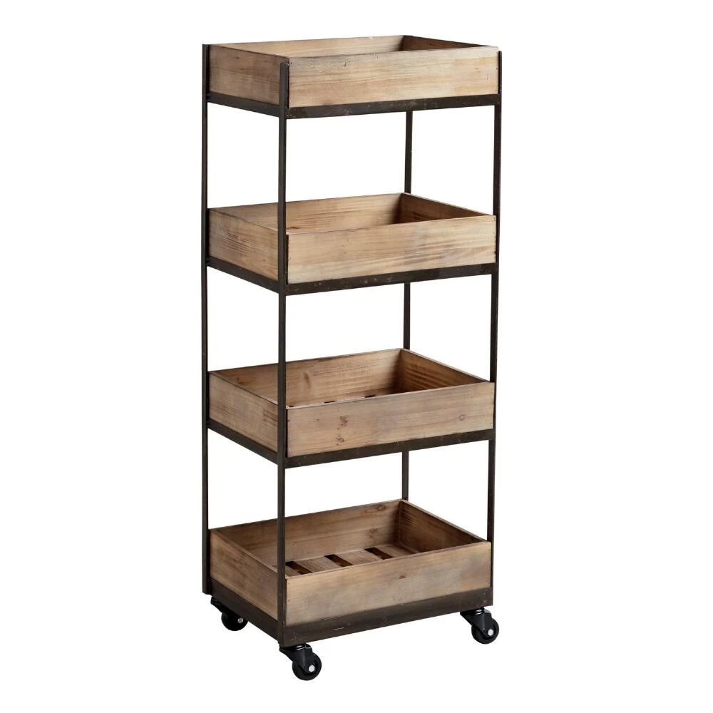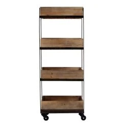 Our four-tier Gavin cart offers a charming way to organize small home office or bathroom essentials. This decorative storage solution with crate-inspired shelves is equipped with casters so you can easily move it from room to room.