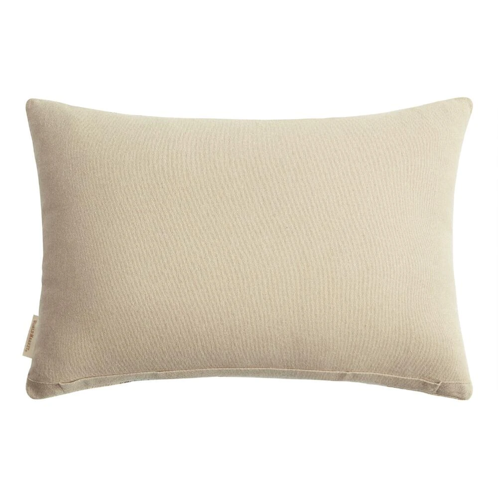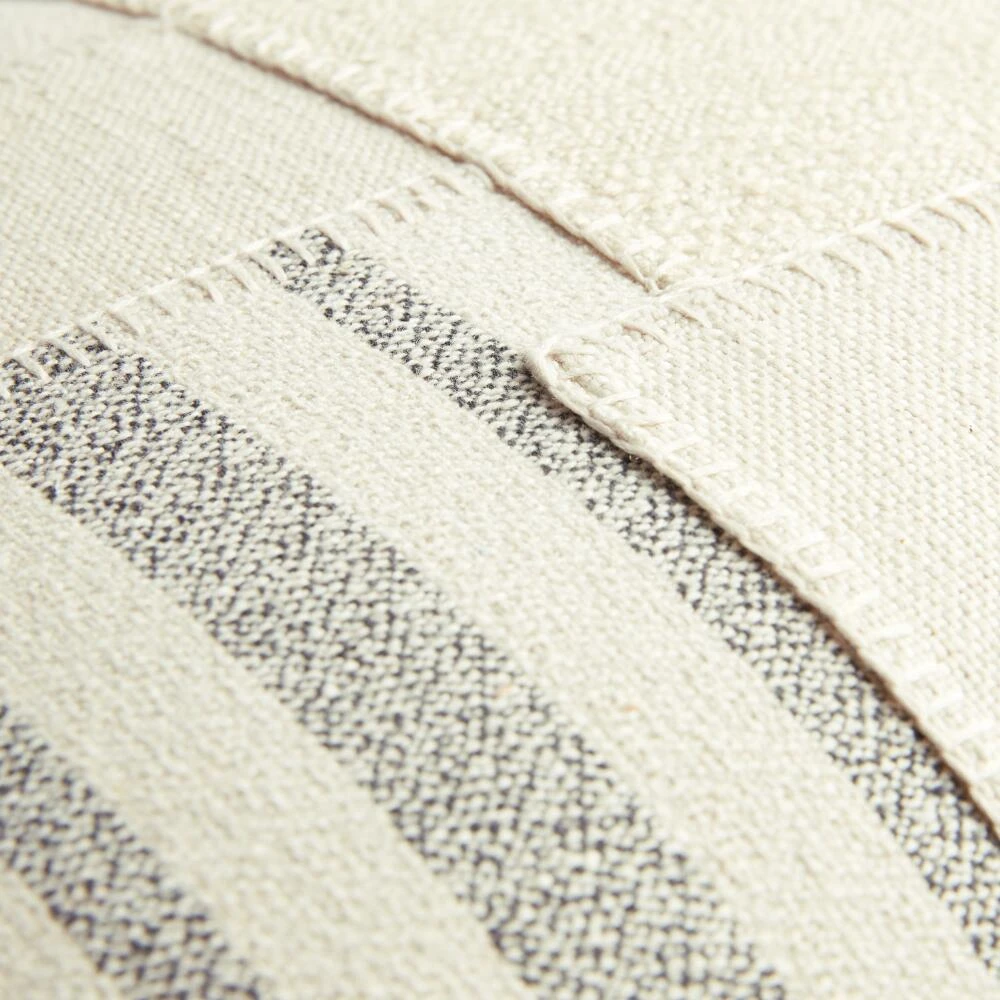 The soft hues of this ivory, gray and light taupe patchwork lumbar pillow will add subtle geometric flair to any seating area in your home. With its offset stripes and square patchwork detail on a solid ivory cotton base, our pillow is versatile enough to fit into any home decor style.