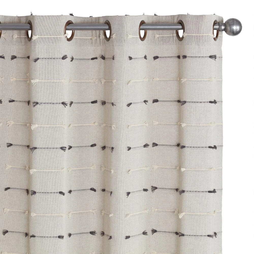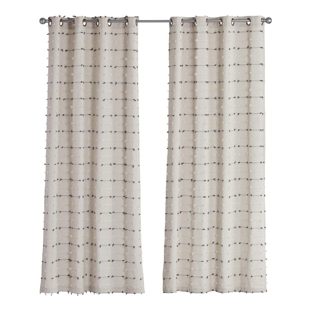 Create a casual, texture-rich backdrop in any room of your home with this pair of light-diffusing cotton curtains. With a sophisticated palette of light gray, charcoal gray and ivory, the cut-loop embroidered lines spanning each panel add a touch of dimension that complements farmhouse-rustic and minimalist-modern spaces alike.