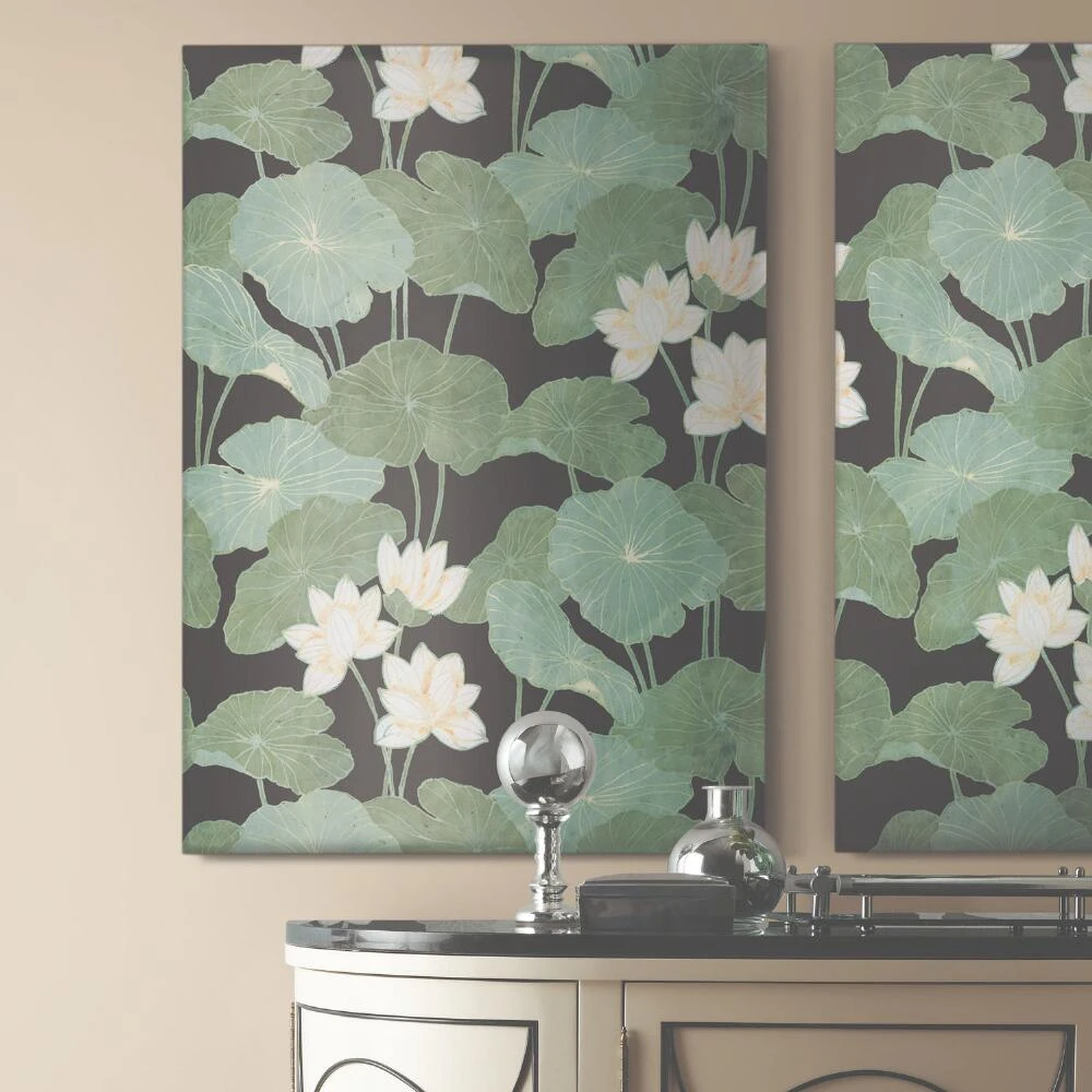 Green water lily leaves and white blooms pop against a black backdrop giving this easy DIY peel-and-stick wallpaper its bold botanical beauty. Simply peel off the backing, stick your new wallpaper to a smooth surface and readjust until it’s exactly where you want it. With a strong, self-adhesive design that won’t leave a sticky residue, it’s an effortless way to transform any wall, drawer interior or piece of furniture.