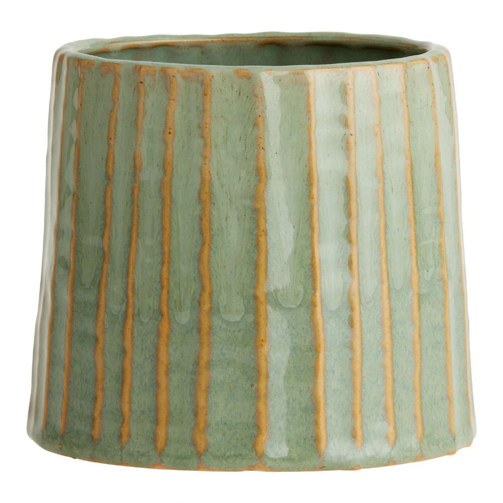 In an earthy green hue, our petite planter is textured with ribbed detailing and a high-shine glaze. This tapered ceramic pot creates a rustic, elegant presentation of any plant.
