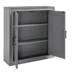 With craftsman-style double doors and a sleek antique bronze handle, our classic wooden wall cabinet keeps bath and grooming essentials organized and stowed away. With your choice of neutral hues and the cabinet’s clean lines, this versatile piece pairs with a broad range of decor themes.