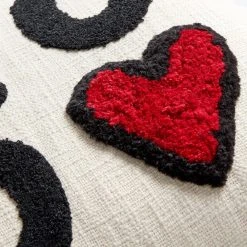 Feel the love with our exclusive XOXO lumbar pillow, perfect for snuggling up on the couch with your sweetheart or gifting to your special someone. Made of a soft cotton and polyester blend, the black XO loop tufting detail pops on an ivory ground with two accent hearts. Complete with black whipstitching along the border and a removable insert, this pillow will be sure to make an appearance in your home year after year.