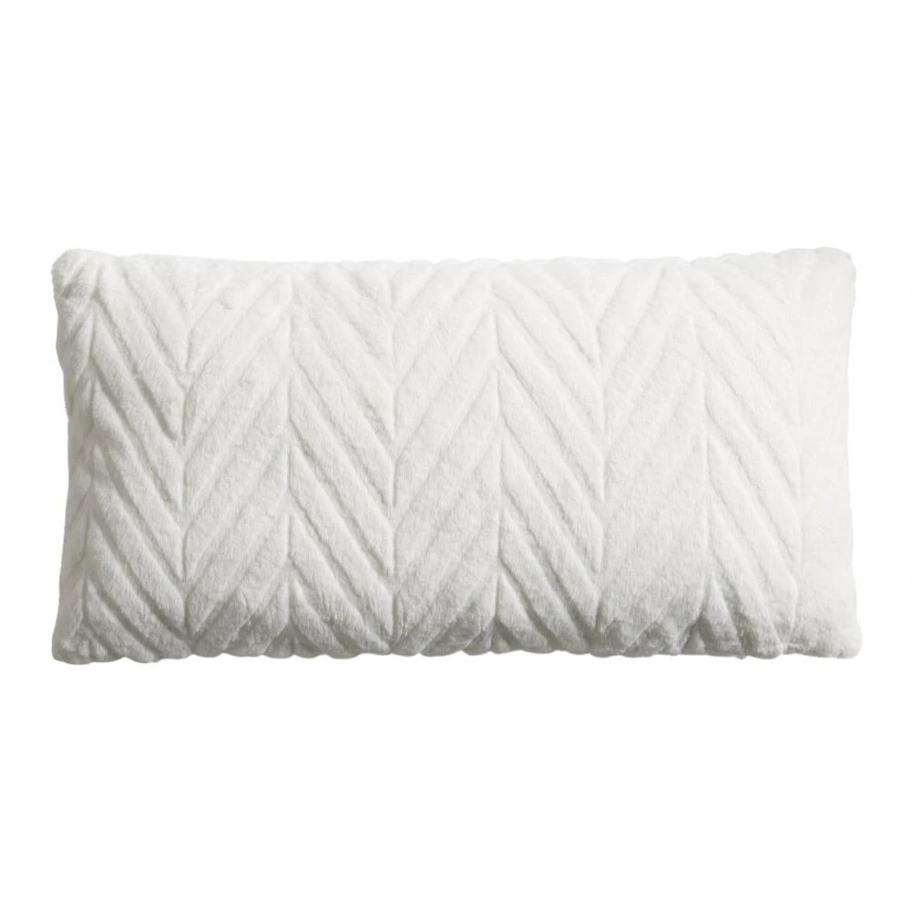 Sometimes all you need is something clean and simple, and that’s what you’ll get with this large, ivory faux fur lumbar pillow with a subtle chevron design. Reversible and oh-so-soft, this comfy toss pillow will be a perfect texture-rich addition to any seating area or bedroom.