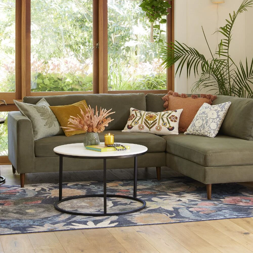 Turn your seating area into an earthy fairyland with this whimsical floral throw pillow. Available in your choice of a pale golden-yellow or light-blue background, the intricate ivory-floral applique gives our toss pillow dimension and charm. It will compliment any home decor with its eye-catching beauty.