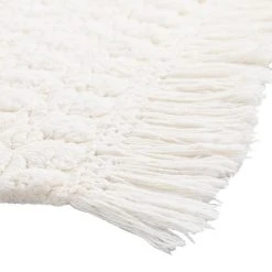 Hand-loomed, our exclusive ivory bath mat is woven in a pattern of large dots. Knotted tassels run along the border, adding a finishing touch.