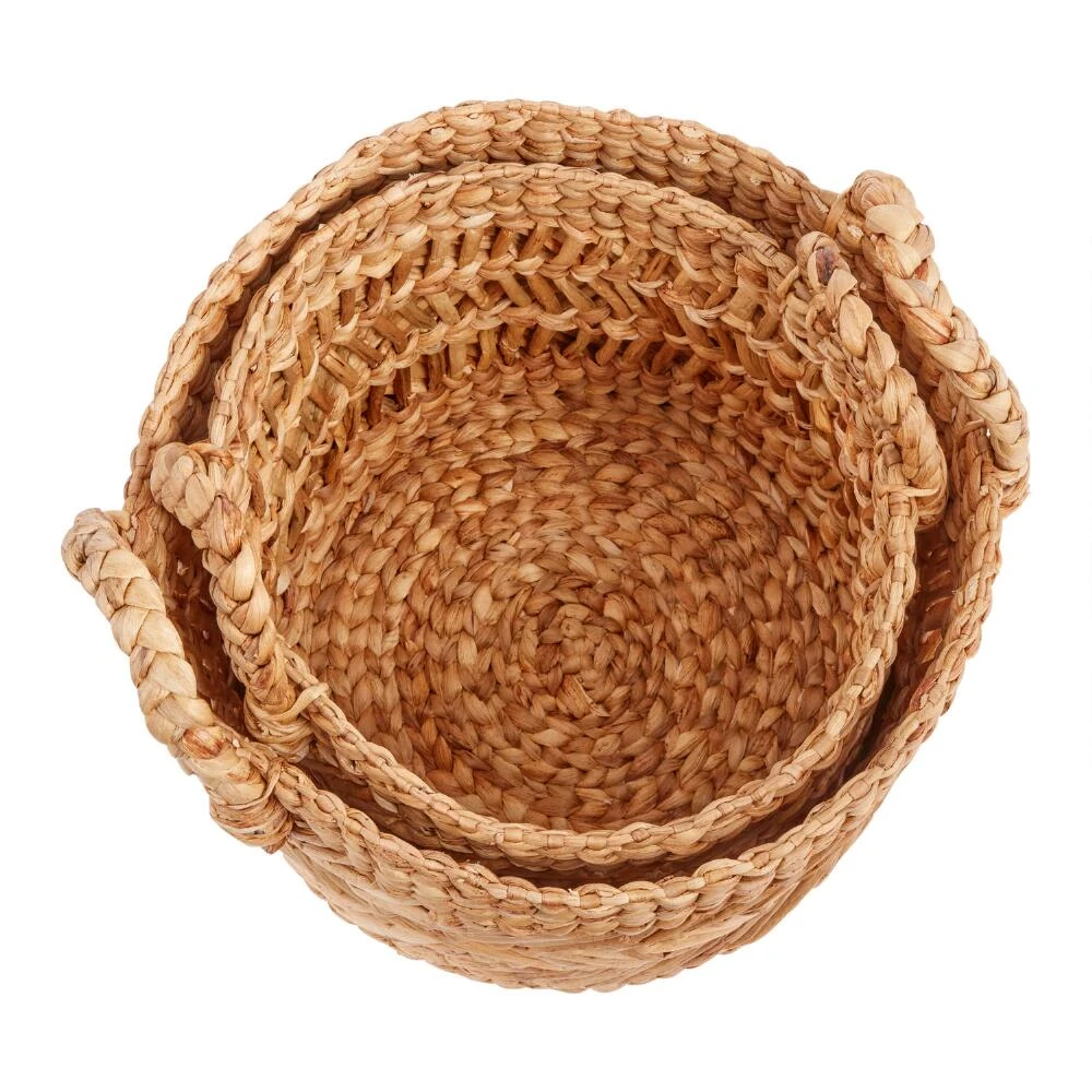 A chic zigzag pattern blends with beautiful braiding in our effortlessly striking basket. Handwoven from strands of natural water hyacinth and topped with chunky handles, this easy-to-tote accent brings warm texture and generous storage to any space.