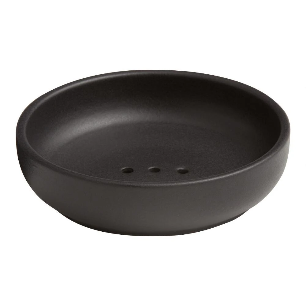 Minimalist and contemporary in design, our black ceramic soap dish has a matte finish that gives it a natural-stone look for a splash of dramatic style. Perfect for keeping your soap in place, three drainage holes ensure everything stays mess-free on your vanity for maximum sophistication.