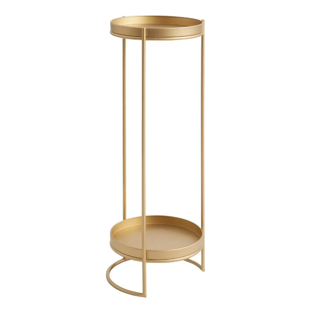 Elevate your favorite pair of houseplants with this handmade 2-tier plant stand. Made with a refined, modern silhouette and matte gold finish, this functional home decor seamlessly complements your minimalist or bohemian home.