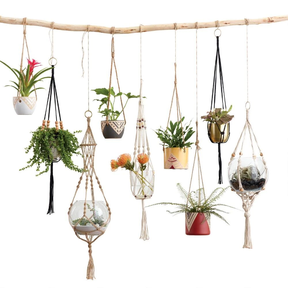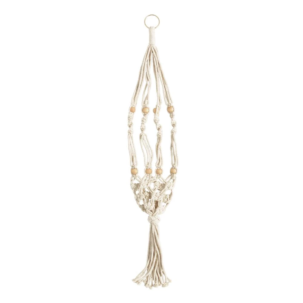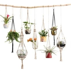 Our exclusive macrame plant hanger uses hand-twisted cotton threads interspersed with natural beads to form a cozy hammock for your plants.