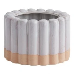 With a dipped effect, our two-tone planter features your choice of white or light green finishes contrasted with a natural stoneware bottom. Deep channel ribbing gives our shallow pot a wealth of texture for a pretty presentation of your houseplant.
