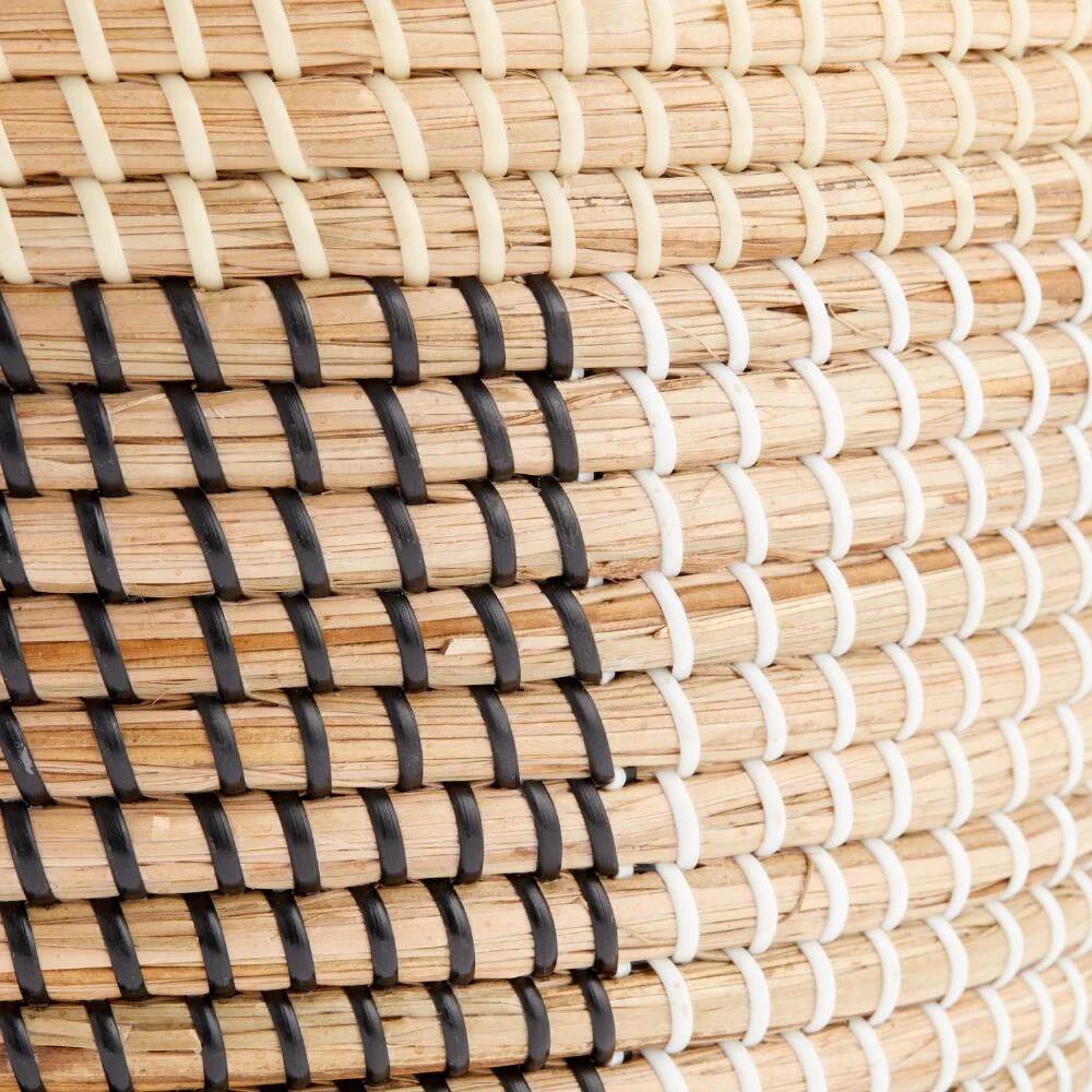Natural seagrass weaves together with black and white recycled plastic to form the bold geometric patterns of our contemporary Nella basket. Sturdy and chic in two roomy round sizes, it delivers loads of clutter-catching capacity in statement-making style.