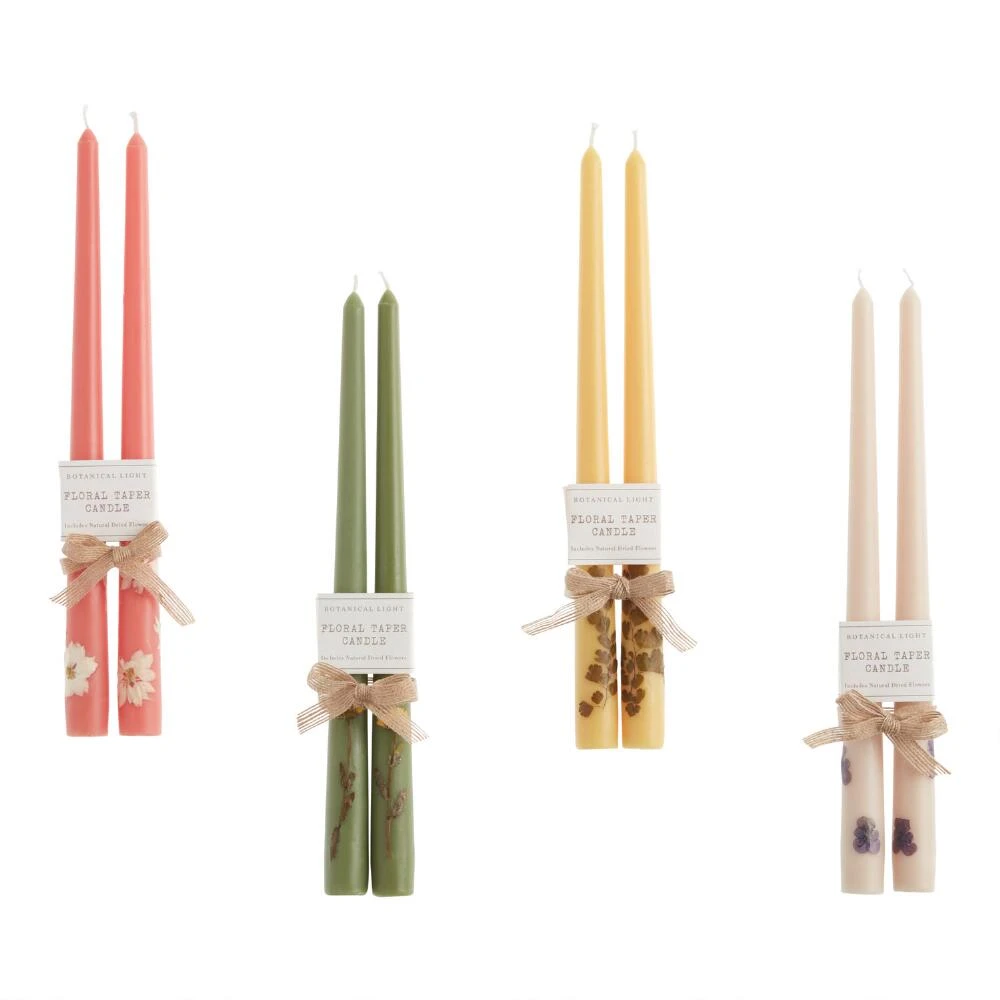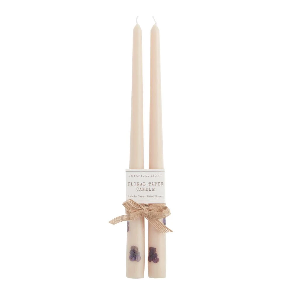 Full of nature’s inherent subtle charm, our taper candles feature hand-pressed dried flowers embedded into the wax. Perfect for adding a captivating decorative touch to your springtime table or mantel, this matching pair is tied with a jute bow and makes a sweet gift.