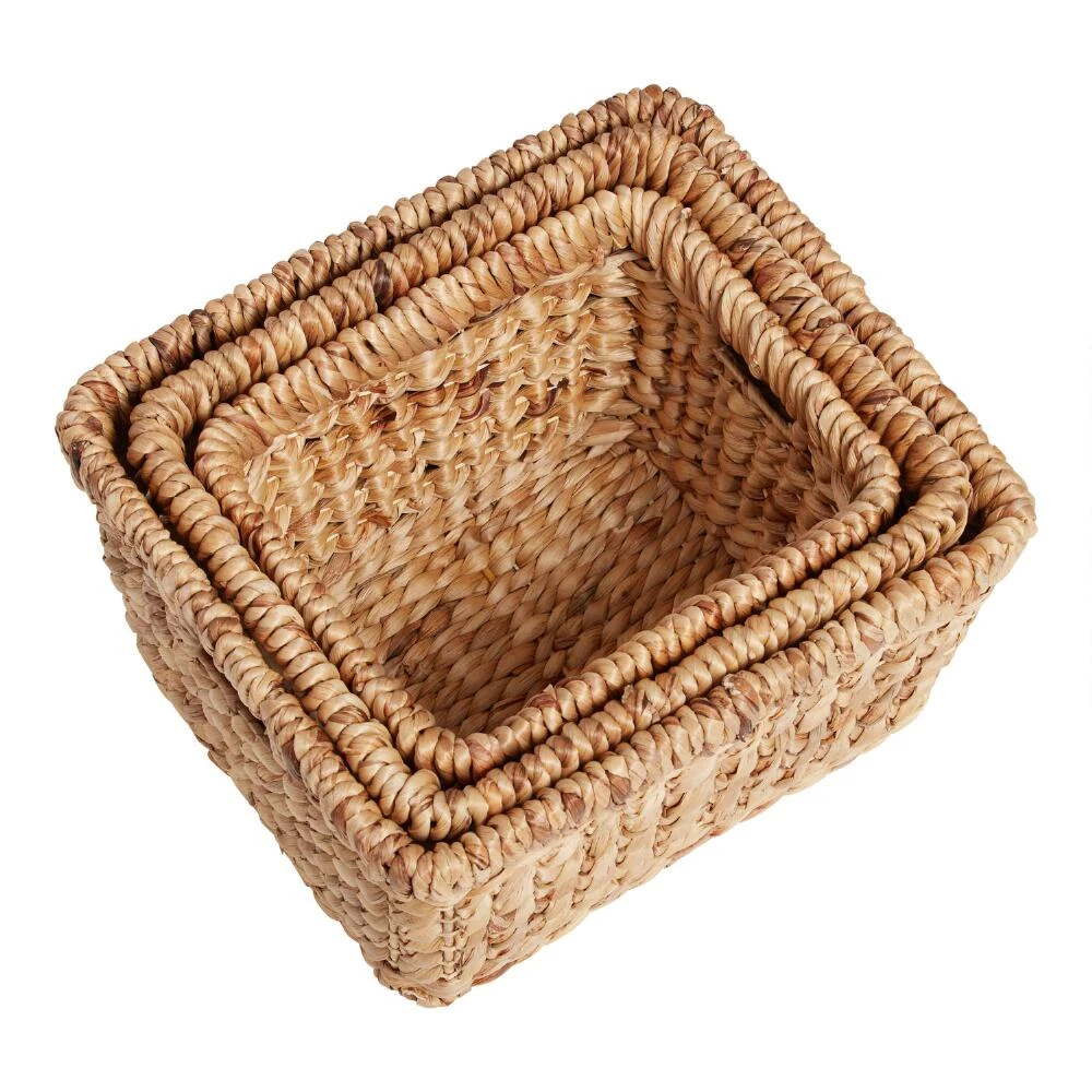 A chunky texture and intricate weave distinguish our charming utility basket, handcrafted from natural water hyacinth in Vietnam. In three spacious sizes with convenient cutout handles, this wildly versatile bin is ready for anything you can throw at (or in) it.