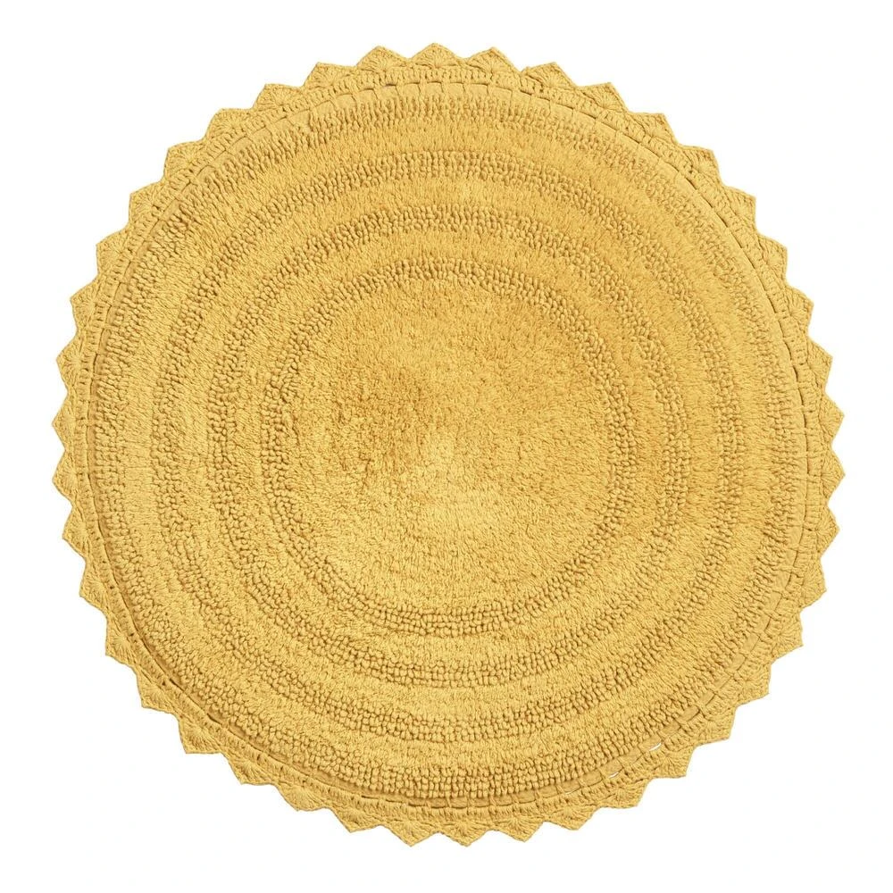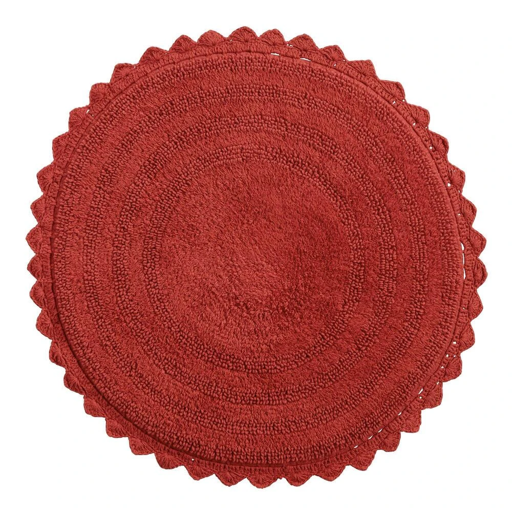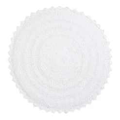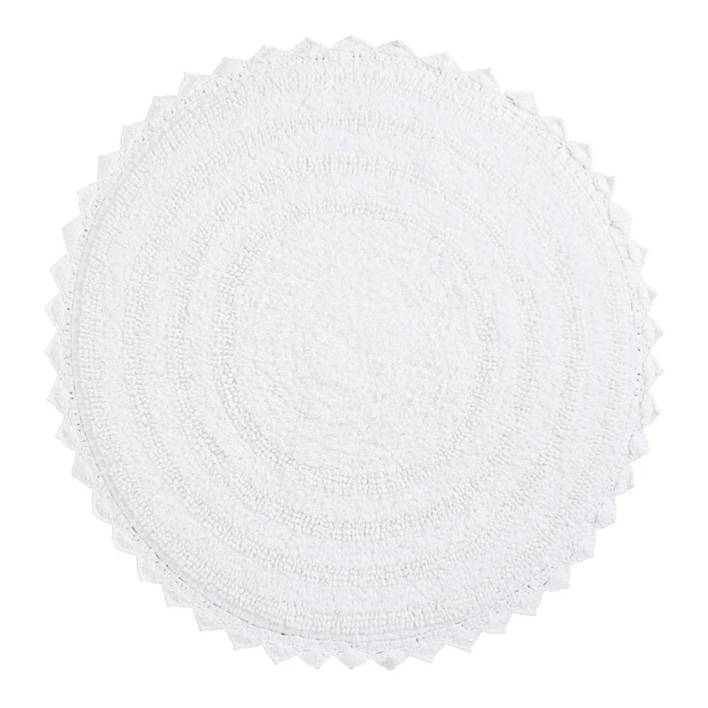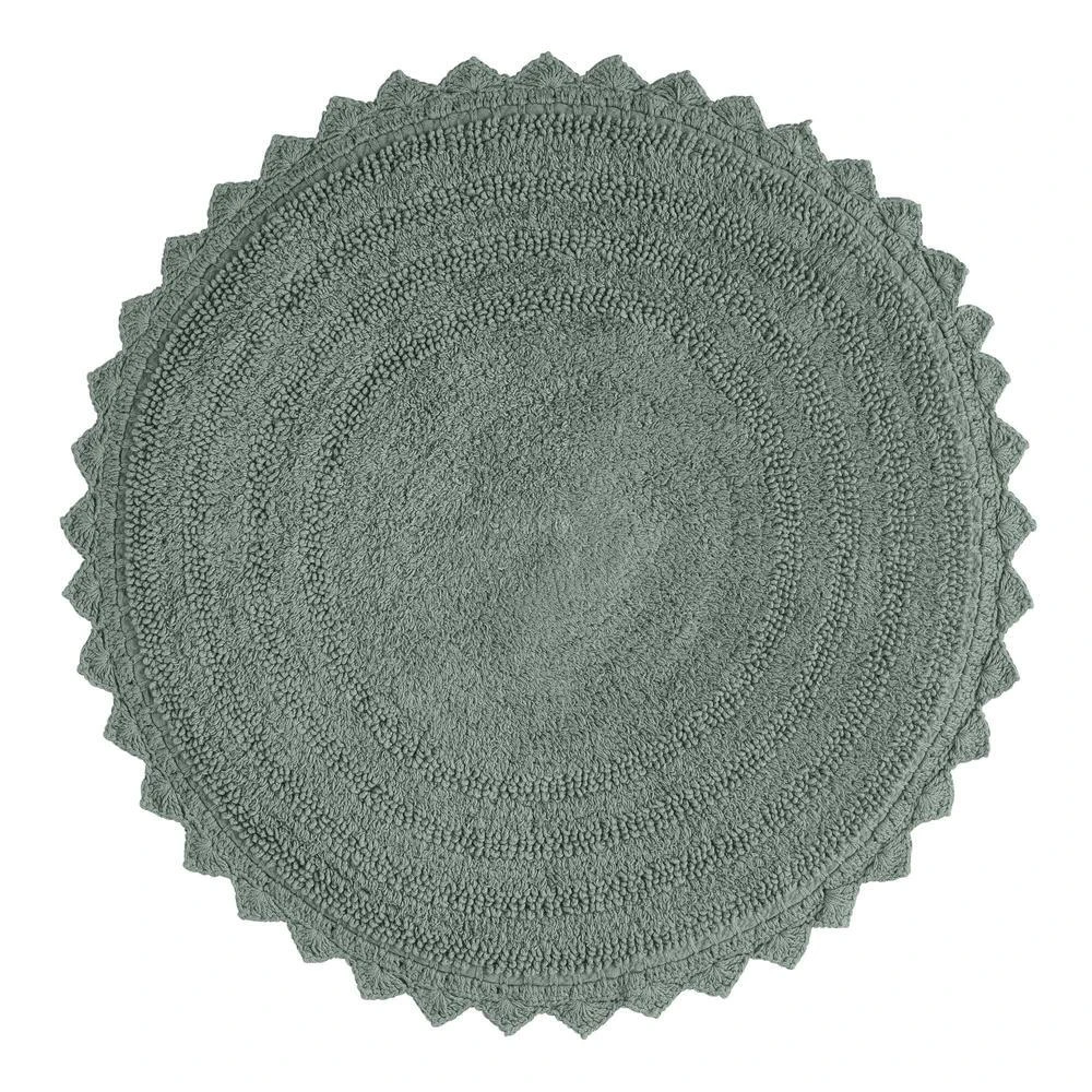 Finished with a crocheted border, our exclusive round cotton bath mat is ideal for keeping small spaces comfortably drip-free. Available in an array of on-trend and classic hues alike, this sweet bathroom decor effortlessly coordinates with a variety of towels and shower curtains.