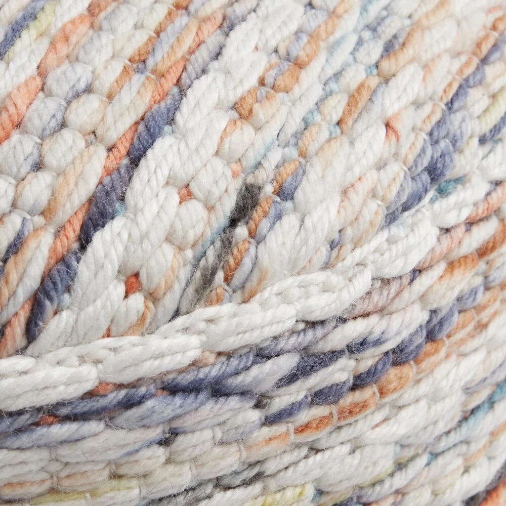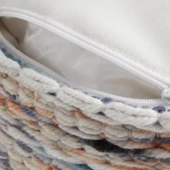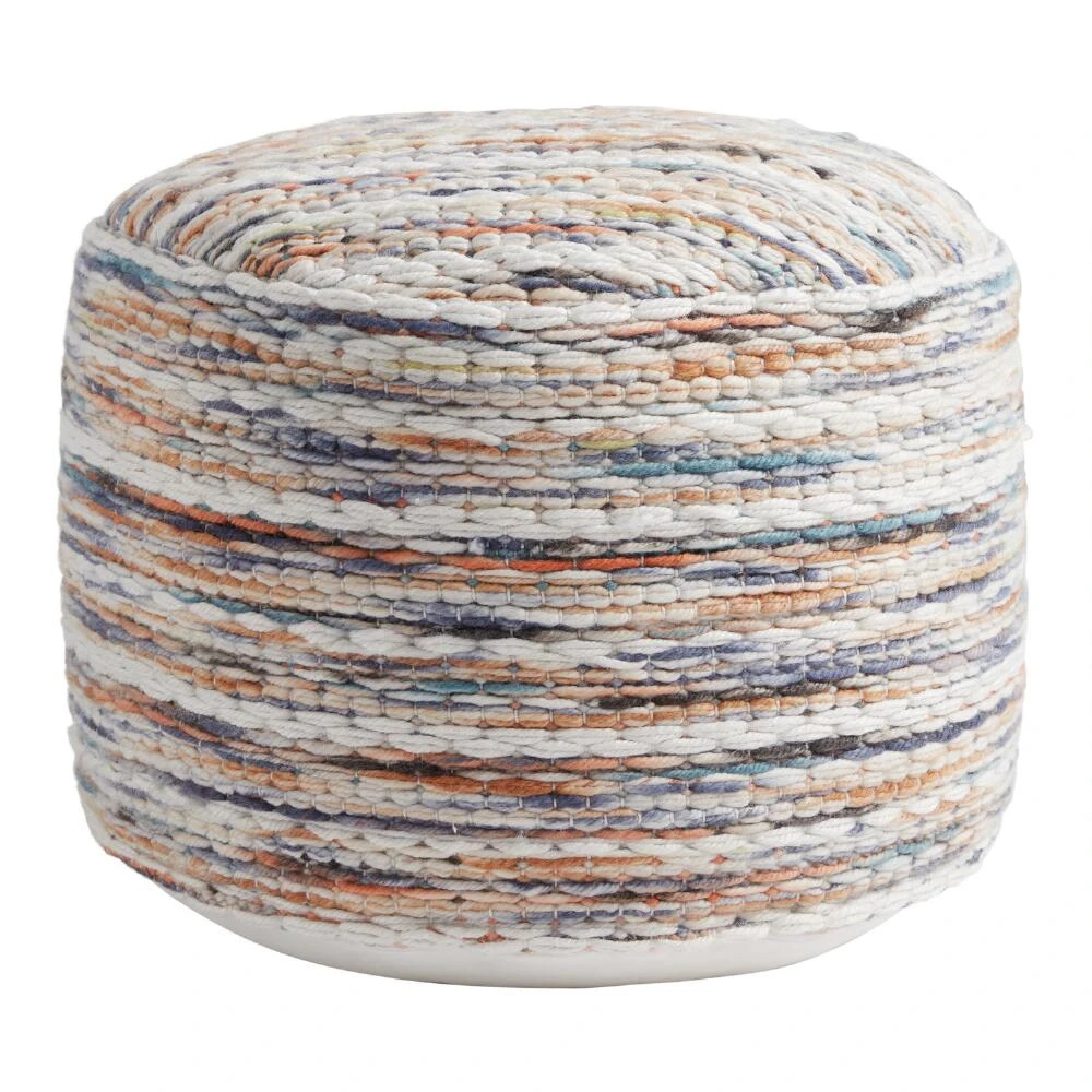 Handwoven in India with an innovative process that puts recycled water bottles to good use, this pouf can accommodate a range of home decor styles. From modern to beachy, the possibilities are endless whether it’s in your living room or used as extra seating on your deck. This stylish cushion is made with a playful mix of taupe, ivory, blue and teal with a solid base.