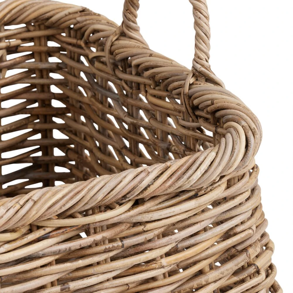 Keep calm and declutter with our kubu-rattan utility basket, available in two sizes. Handcrafted in Indonesia, its coastal-inspired gray hue is achieved by soaking the fibers in mud for over two weeks. Whether you’re organizing books, blankets or entryway odds and ends, this broad-based, loop-handled basket is a welcome addition to your space.