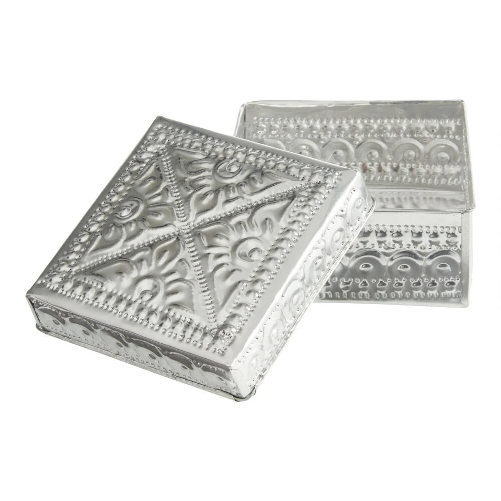 Handcrafted of beautifully embossed tin, this decorative box is rich in texture and shine. Use it as a stylish container for your favorite small keepsakes or an elegant gift box for something special.