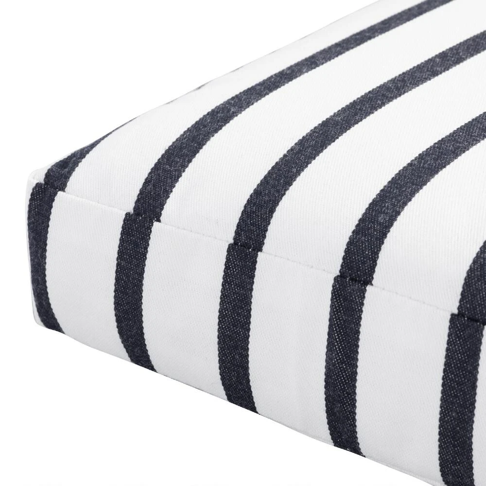 Featuring a white and indigo-blue striped Sunbrella cover, our premium custom-made cushion is gusseted for enhanced comfort. Sunbrella performance fabric is crafted of highly saturated, U.V.-stable pigments that don’t fade, it resists mold and mildew and is durable and easy to clean. Since 1961 Sunbrella has produced innovative materials while striving to make minimal impact on the environment and never sacrificing beauty or style.