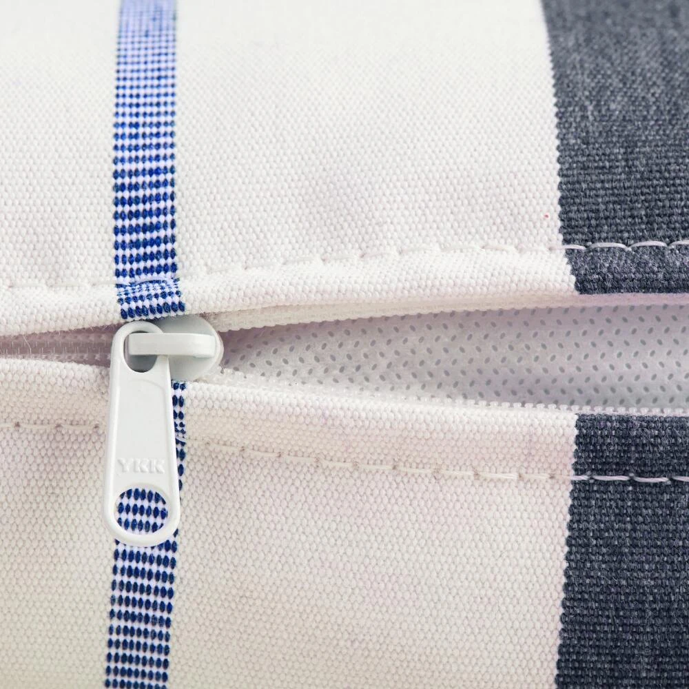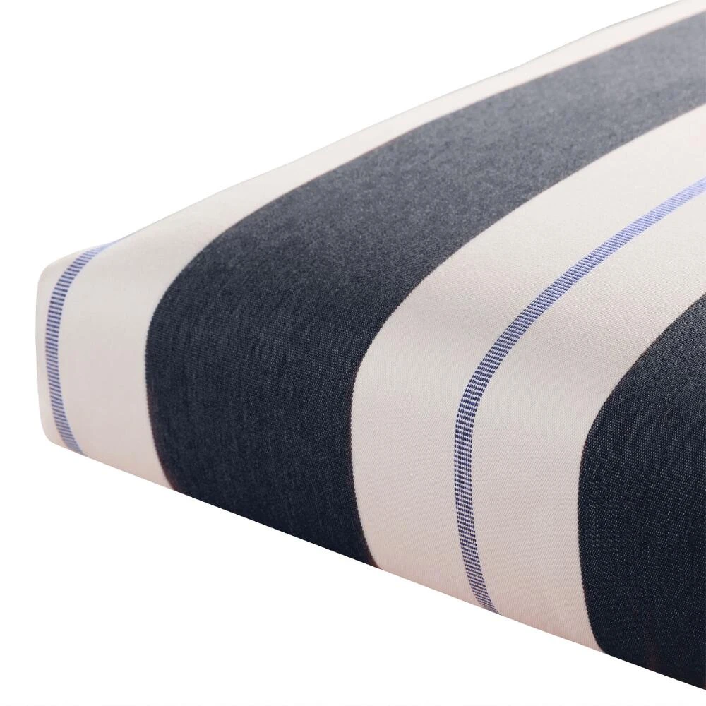 With a navy, white and gray striped Sunbrella cover, our premium custom-made cushion updates the look and feel of your favorite seat. Sunbrella performance fabric is crafted of highly saturated, U.V.-stable pigments that don’t fade, it resists mold and mildew and is durable and easy to clean. Since 1961 Sunbrella has produced innovative materials while striving to make minimal impact on the environment and never sacrificing beauty or style.